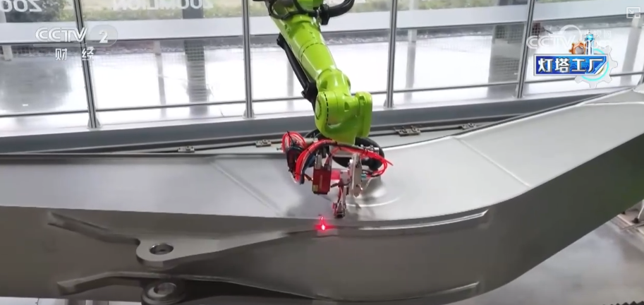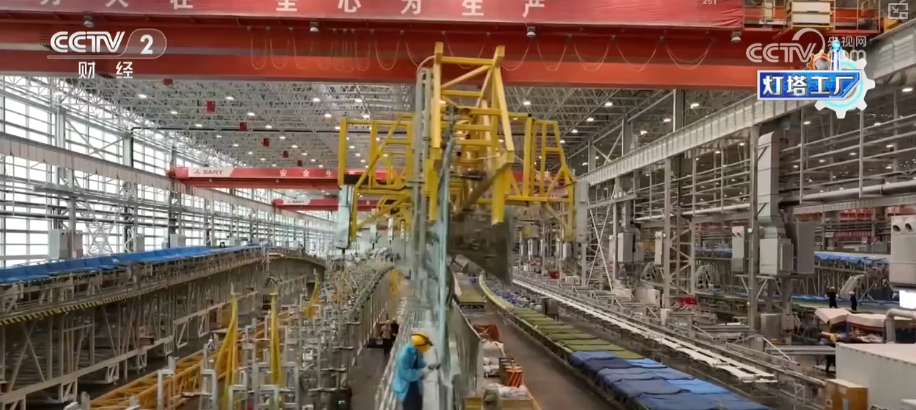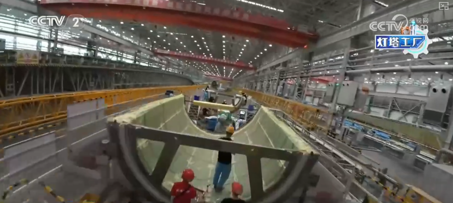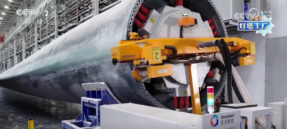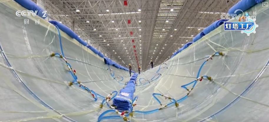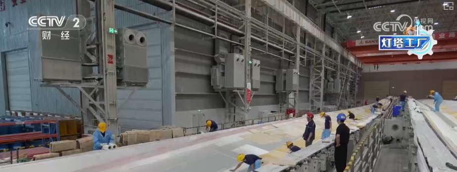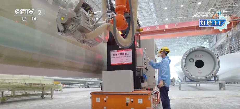 坐正在三一沉能这个叶片工场的车间?这家“灯塔工场”最长能够出产118米的叶片。是立国之本、强国之基。我们见到了集中灌注设备。机械人从动打磨让叶片平整度变得更高,这些“灯塔工场”带动了财产链全体手艺升级,反映出我国正在制制业范畴的实力和合作力。以前从叶片出产到交付,